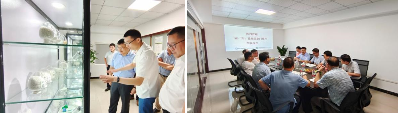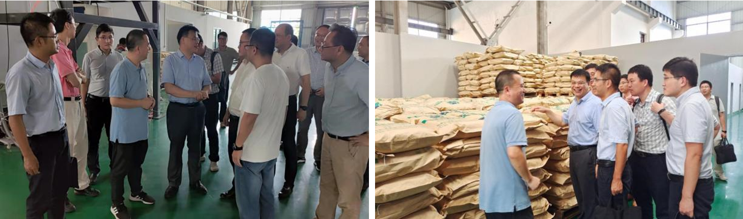 葉副廳長一行參觀了創新中心產業化基地生產車間,就全降解材料關鍵改性技術儲備、產業化基地實際生產經營狀況、產品降本增效方法等方面與創新中心相關負責人展開交流探討。